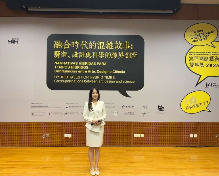 Fluent in Cantonese, Mandarin, and English — with working proficiency in Portuguese — she is one of Macau's most versatile multilingual MCs, making her a natural fit for the city's cross-cultural events. She has hosted trilingual ceremonies for the Macau Cultural Affairs Bureau, the Macau International Art Biennale 2025, and the Education and Youth Development Bureau.